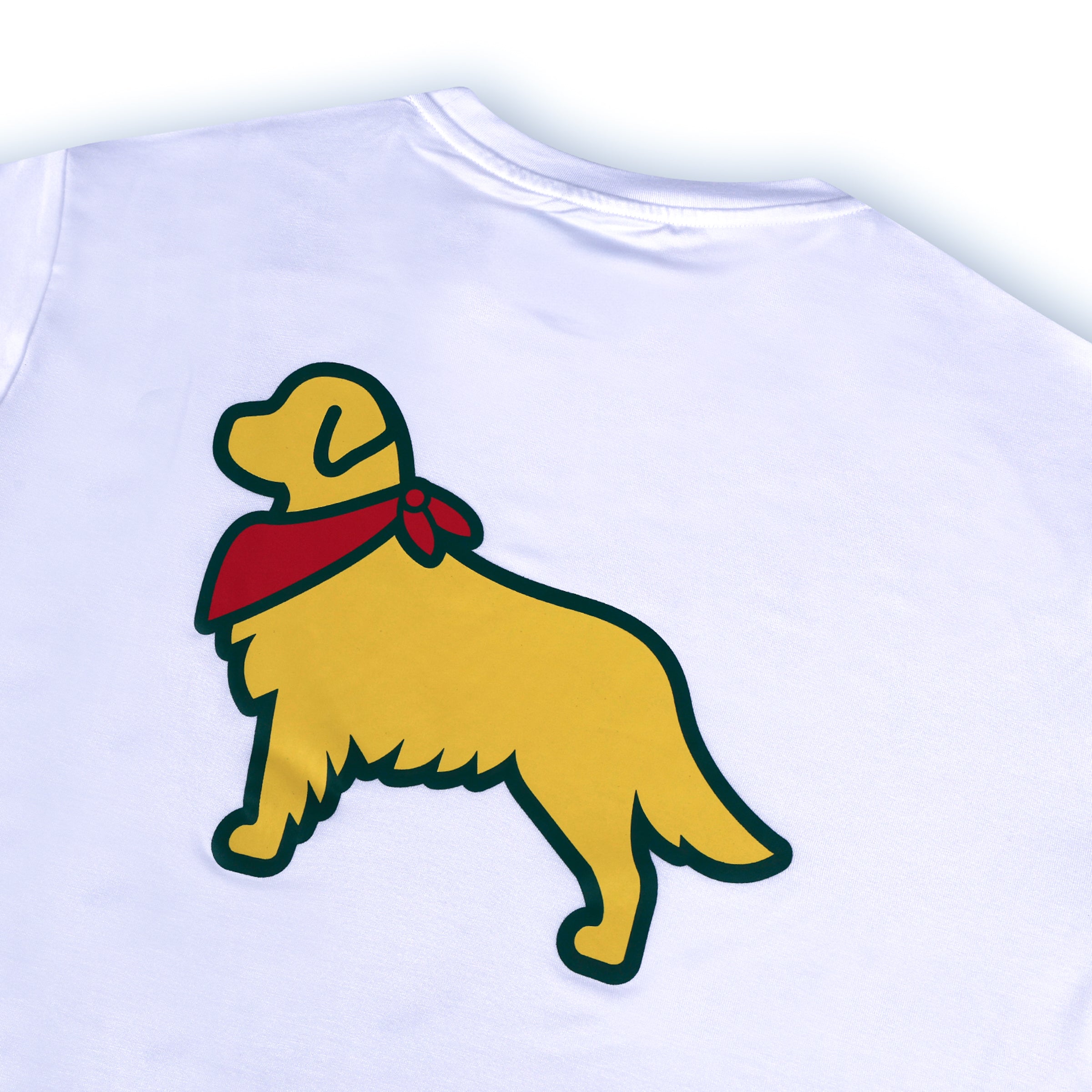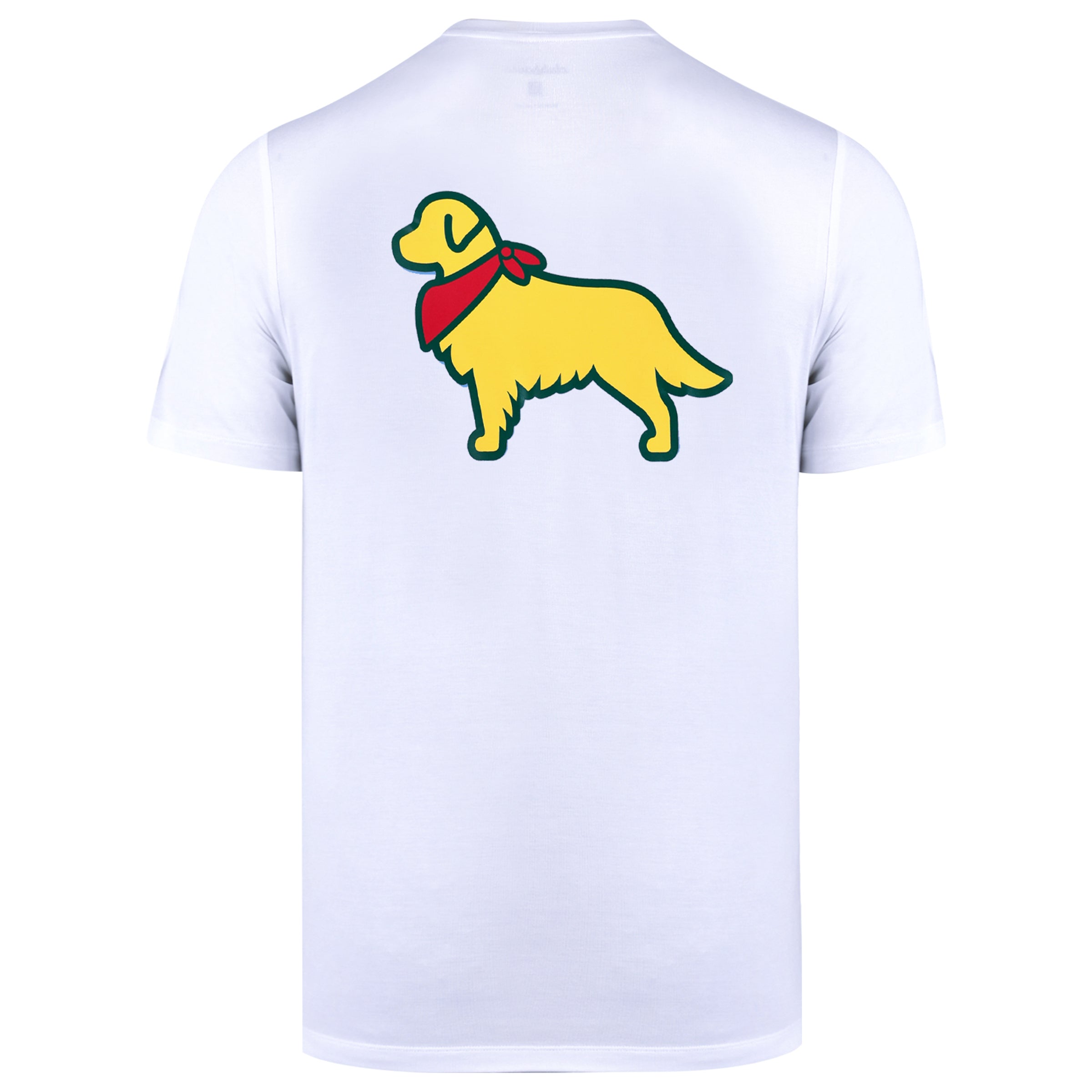 Our golden retriever outline is filled with golf flags — a subtle nod to the game and the good boys who make it better.